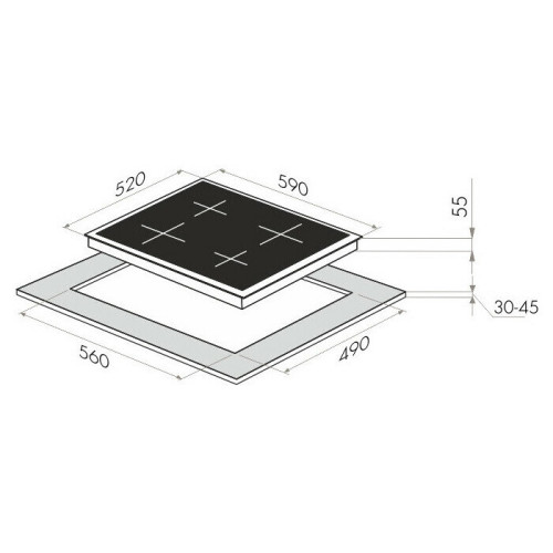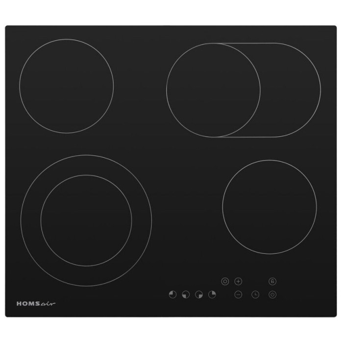 Особенности: Индикация уровня нагрева от 0-9 Блокировка Таймер Расширяемая зона Управление: Сенсорное, есть блокировка управления. Материал исполнения: Стеклокерамика Нагревательный элемент: 1. Варочная зона диаметр 165 мм 2. Варочная зона диаметр 165 мм 3. Варочная зона диаметр 140/200 мм 4. Варочная зона диаметр 165/270 мм Мощность конфорок: 1 х 900/1100 Вт 3 х 1200 Вт Размеры: 580*510*52мм (Ш*Г*В) Цвет: Черное стекло