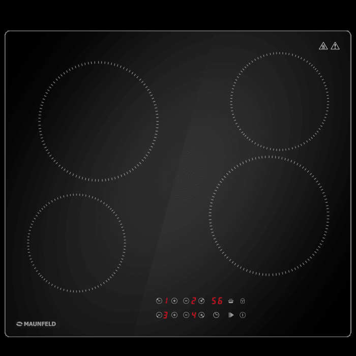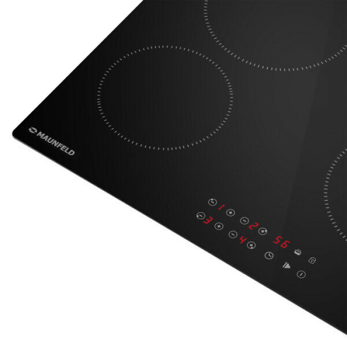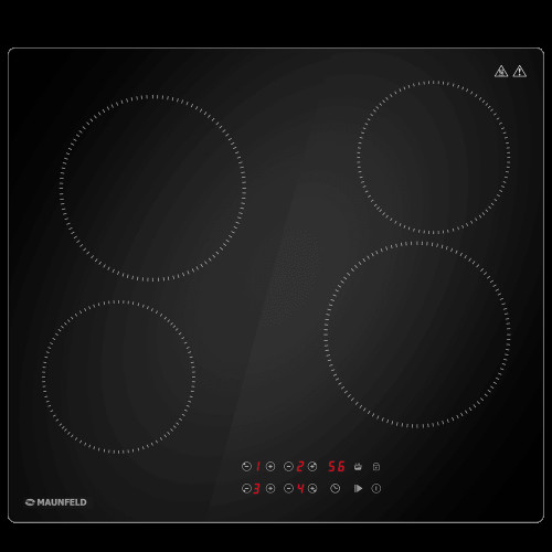 Тип панели: электрическая; Материал панели: стеклокерамика; Расположение панели управления: спереди; Переключатели: сенсорные; Общее количество конфорок: 4; Безопасность: кнопка блокировка панели, индикатор остаточного тепла, автоматическое отключение, защита от детей; Функции: таймер, расширение зоны нагрева, поддержание тепла, кратковременная пауза; Цвет: черный;