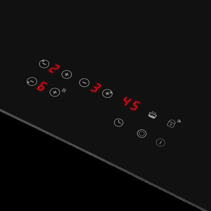 Стильная электрическая встраиваемая варочная панель шириной 45 см выполнена из ударопрочной стеклокерамики черного цвета. Благодаря идеальной гладкости и высокой износостойкости она легко очищается.