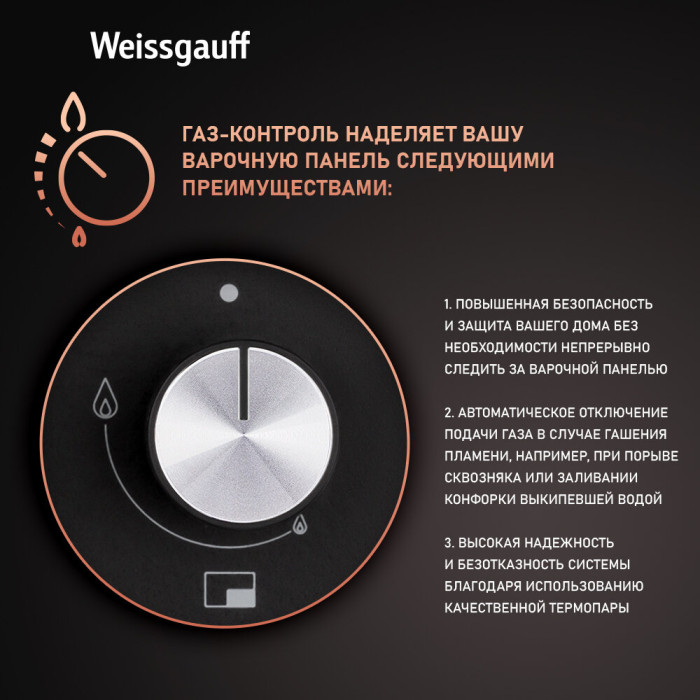 газ-контроль, конфорка WOK, электроподжиг в поворотной ручке