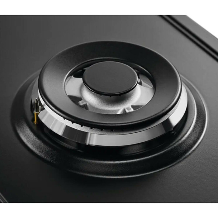 Элегантная газовая плита Electrolux 60 см с чугунными решетками, конфоркой Wok, точным контролем пламени и автоматическим отключением газа.