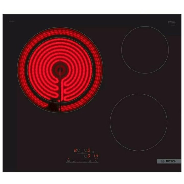 Конфорки ЭлектрическиеЦвет ЧерныйВысота 4.5 смШирина 59.2 смГлубина 52.2 смКоличество конфорок 3Тип подключения независимыйГриль НетТаймер ЕстьУправление СенсорноеЗащита от детей ЕстьМатериал рабочего стола СтеклокерамикаИндикация остаточного тепла ЕстьЗона расширения ЕстьШирина шкафа для встраивания 60 смАвтоматика закипания НетТип таймера звуковой с отключениемМаксимальная мощность подключения 5700 Вт. Конфорка WOK НетВстраивание в столешницу НакладнаяТип рамки Без рамкиЦвет рамки НетКомбинированный рабочий стол НетИнтегрированная вытяжка НетСтрана-производитель Не указана