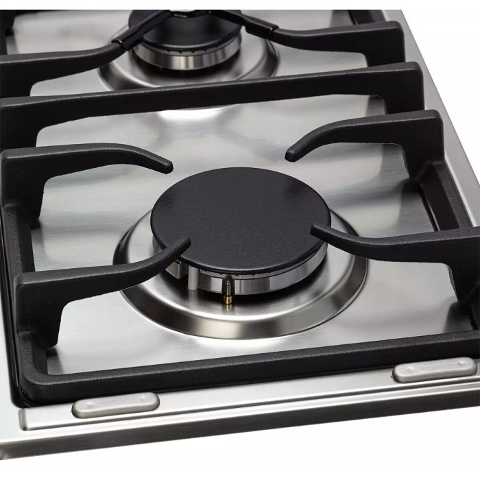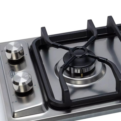 Газовая варочная поверхность DeLonghi I 23/1 ASV CD оснащается двумя конфорками «Домино», выполненными в стиле Hi-Tech. Они станут вашим главным инструментом на кухне и обеспечат комфорт при повседневном приготовлении разнообразных блюд. Поддержка системы «Газ-контроль» способствует безопасному использованию устройства без боязни утечки газа: если пламя зоны нагрева внезапно погаснет, прибор тут же прекращает подачу газа. Две поворотные ручки, при помощи которых регулируется мощность пламени, предусматривают встроенный электроподжиг. С его помощью варочная поверхность автоматически поджигает газ от электрической искры.