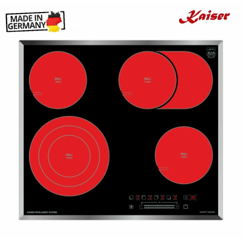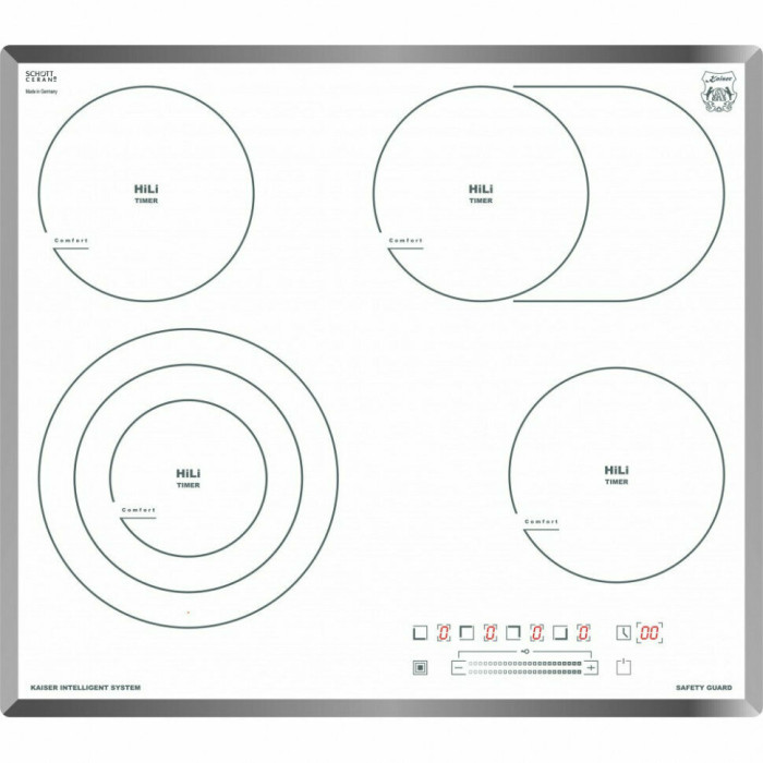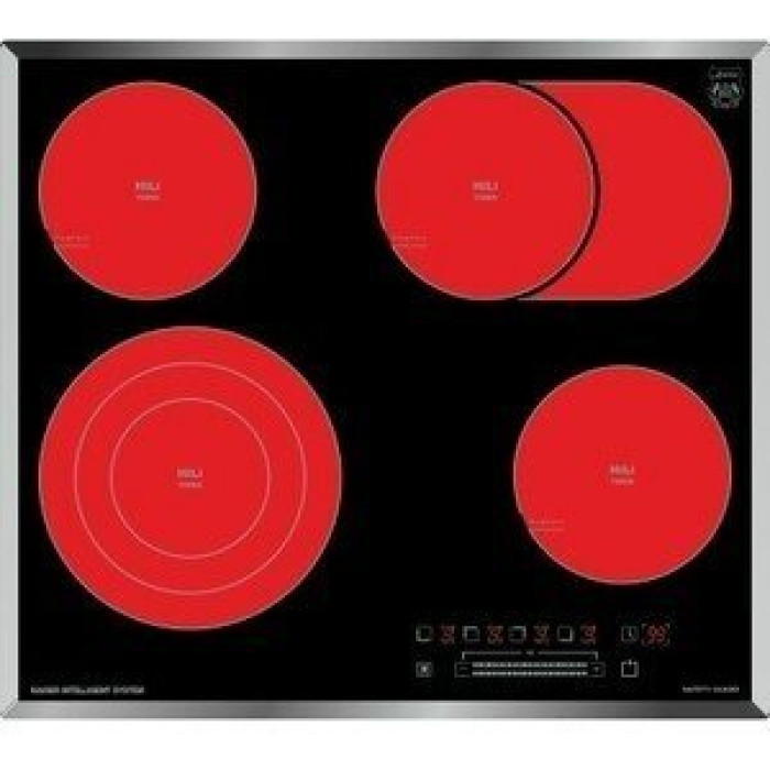 2 × Ø 16,5 cm – 1,2 kW 1 × Ø 12,0/ 17,5/ 23 cm (0,8/ 1,6/ 2,3 kW) – Тройное поле 1 × Ø 16,5/ 16,0 × 27 cm (1,1/2,0 kW) – Расширяемое поле