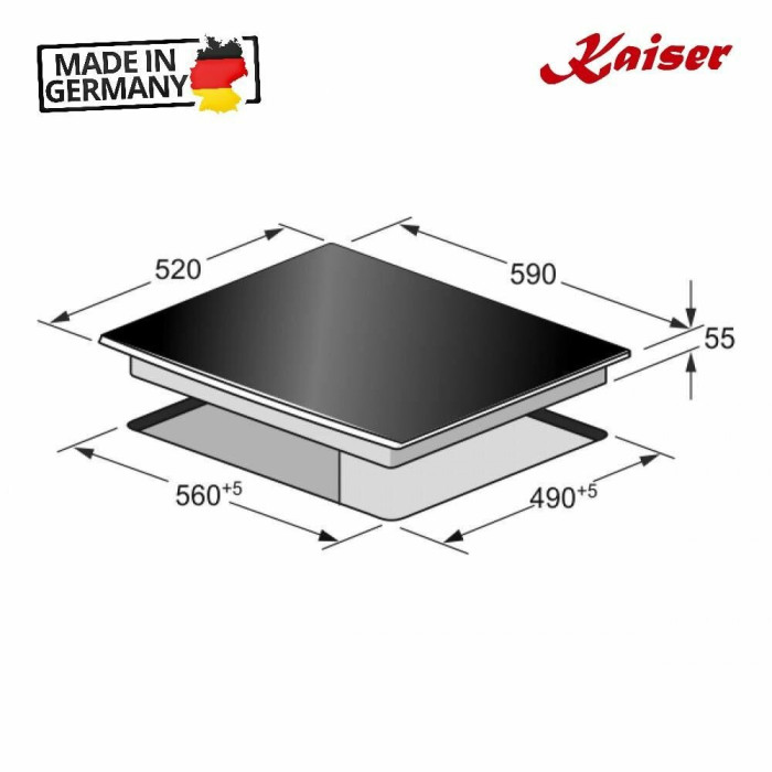 4 нагревательных поля: 200 × 200 мм, 1,8 кВт, режим POWER – 3,0 кВт ▪ 2 объединённых двойных поля: 200 × 400 мм, 3,0 кВт, режим POWER – 4,0 кВт