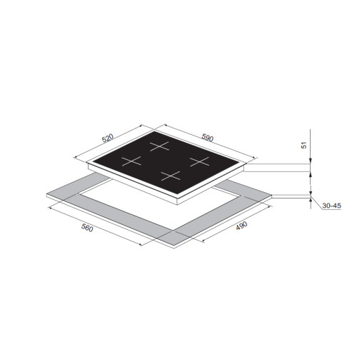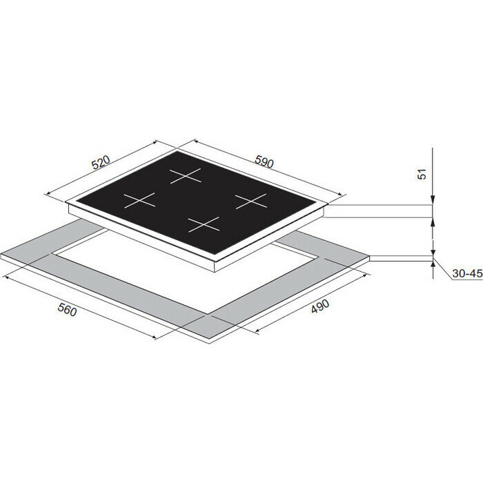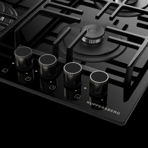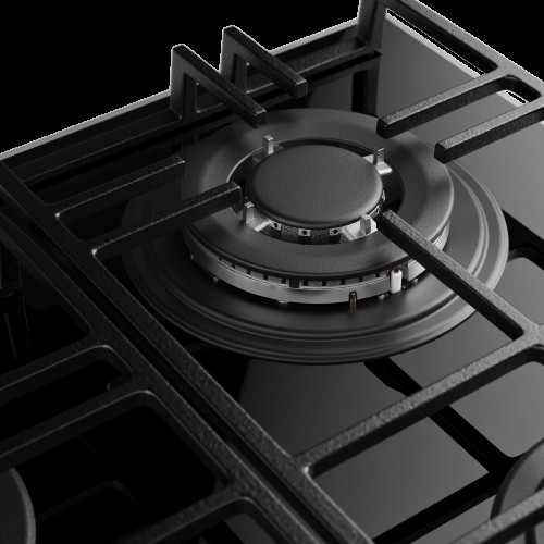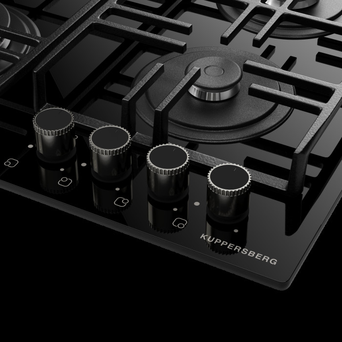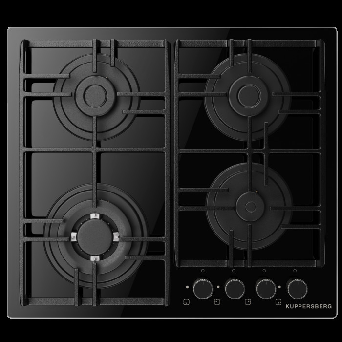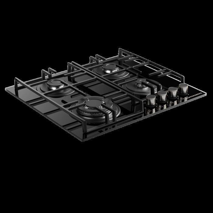 поверхность газовая независимая, 60 см, газ на стекле, 4 конфорки, решетки чугунные, черный