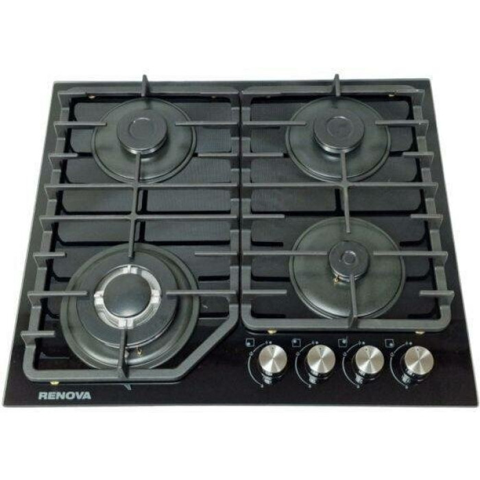 60*52*10. Газовая панель. Газ-контроль конфорок. Конфорка «Двойная корона». Электроподжиг в поворотной ручке. Материал поверхности — закаленное стекло. Материал решетки чугун. Цвет черный. Производство Турция.