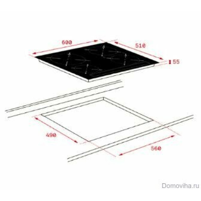 поверхность варочная стеклокерамическая независимая индукционная, 60 см, черный
