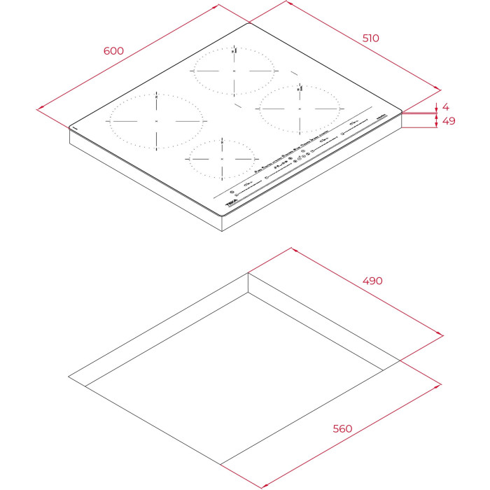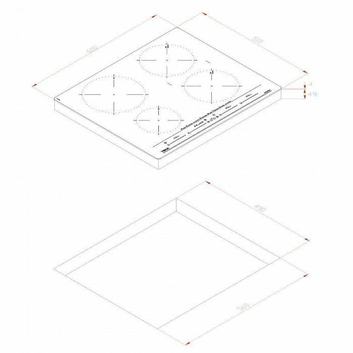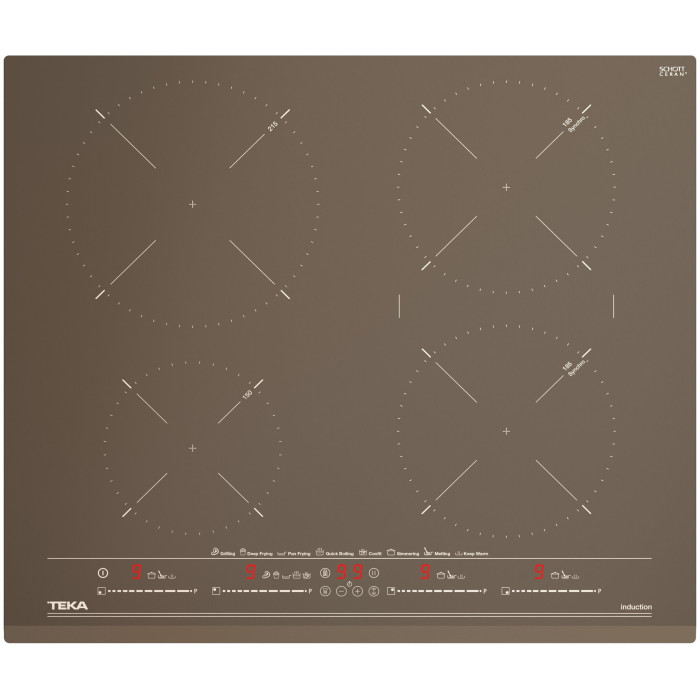 1 индукционная зона Ø 215 мм, 2 индукционные зоны Ø 185 мм, 1 индукционная зона Ø 150 мм