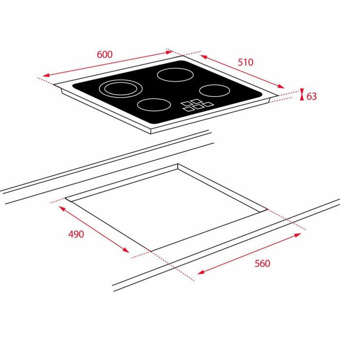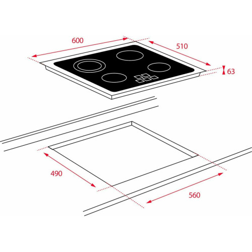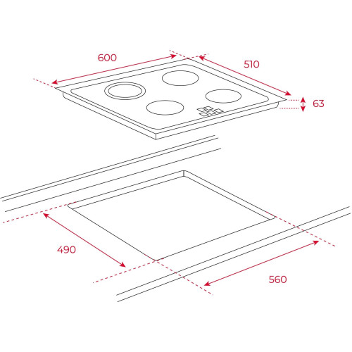 1 двухконтурная конфорка Ø 210/180 мм, 1 конфорка Ø 180 мм, 2 конфорки Ø 145 мм