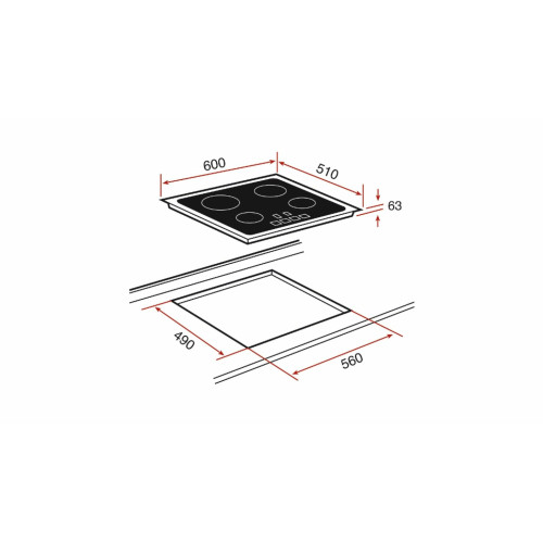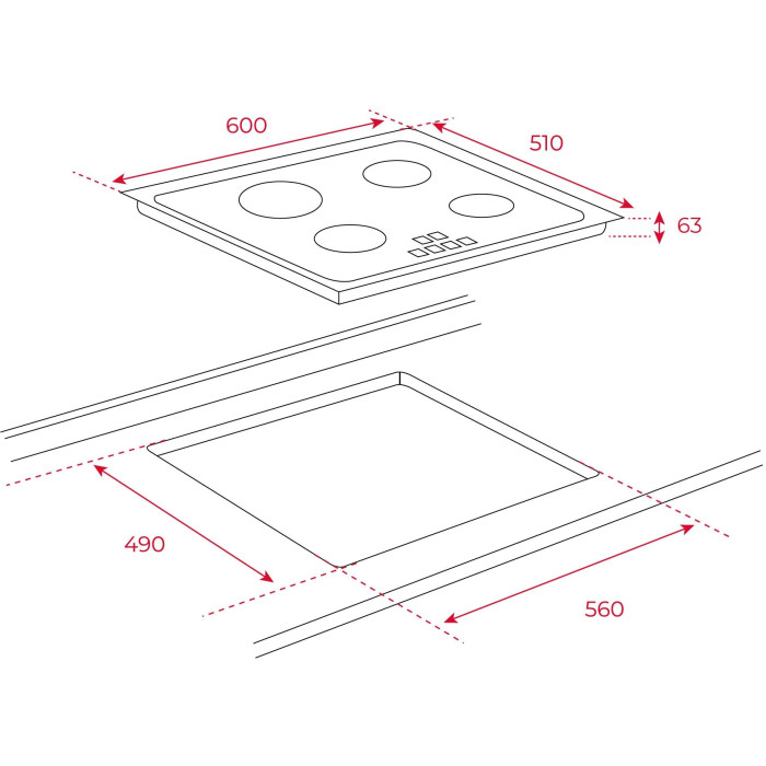 1 двухконтурная конфорка Ø 210/180, мм 1 конфорка Ø 180 мм, 2 конфорки Ø 145 мм