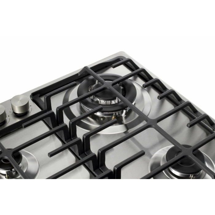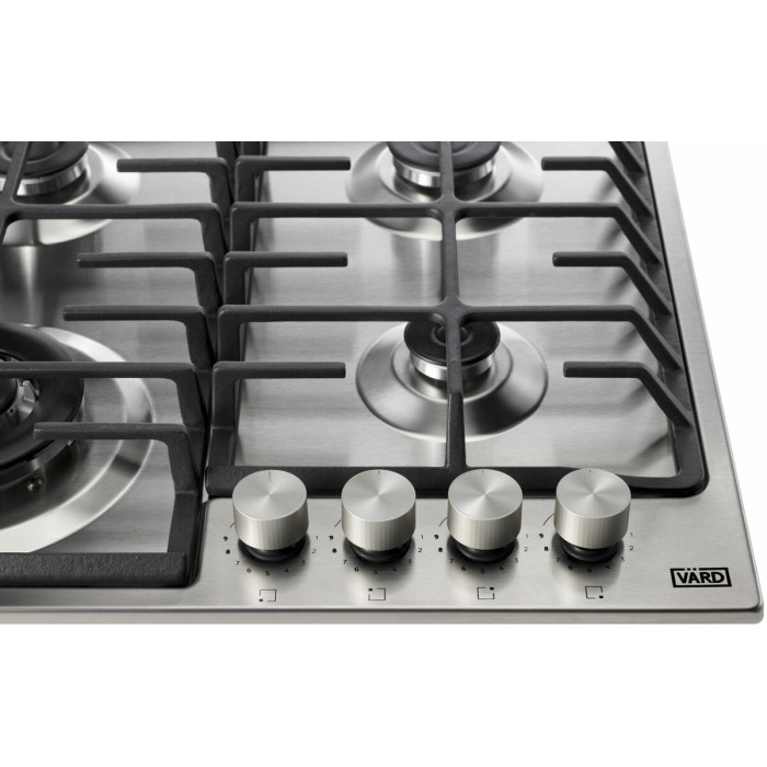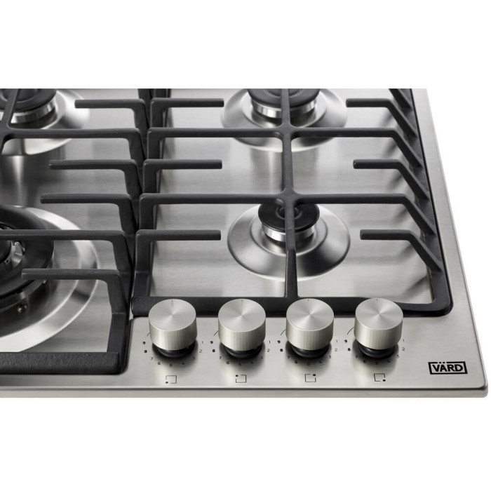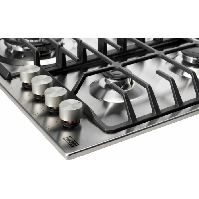 Газовая варочная панель на металле VARD VHGS6434X Газовая варочная панель – надежный и удобный инструмент, который поможет вам приготовить вкусные и разнообразные блюда. Изготовлена она из качественной нержавеющей стали, что придает ей элегантный внешний вид и позволяет легко ухаживать за поверхностью. Снабжена ступенчатыми регуляторами StepFlame, которые позволяют точно регулировать мощность горения газа, обеспечивая идеальный нагрев. Ширина варочной панели составляет 60 сантиметров, что делает ее компактной и удобной в использовании. Держатели для посуды выполнены из прочного чугуна, что обеспечивает стабильную и надежную основу для кастрюль и сковородок. Наличие газконтроля и автоматического автоподжига делает использование панели безопасным и удобным. Кроме того, варочная панель оборудована WOK конфоркой, которая позволяет легко готовить блюда в специальных кастрюлях для воков. Изделие также включает 4 конфорки, обеспечивая достаточное количество места для приготовления нескольких блюд одновременно. Варочная панель – это идеальное решение для любой кухни, объединяющее в себе надежность, функциональность и простоту использования. Благодаря своим характеристикам, она станет незаменимым помощником в создании вкусных и качественных блюд. Газовая варочная панель на металле VARD VHGS6434X Газовая варочная панель из нержавеющей стали шириной 60 см сочетает в себе безопасность и комфорт в использовании. Особенности: Вок-конфорка Вок-конфорка — отличное решение, когда нужно разогреть много еды или приготовить блюдо, для которого нужно мощное пламя Автоподжиг Автоподжиг позволяет включить панель и подать газ одним поворотом регулятора Газконтроль Газконтроль — функция автоматического перекрытия газа в случае угасания пламени Технология StepFlame StepFlame — технология пошагового регулирования силы пламени Чугунные держатели FlexiSpace Конструкция чугунных держателей FlexiSpace позволяет удобно и безопасно использовать посуду разных размеров — от турки до широкой кастрюли. Будильник Позволяет запрограммировать звуковой сигнал через определённое время без отключения зоны нагрева. Конфорки газовой варочной панели на металле VARD VHGS6434X: Количество конфорок 4 Количество газовых конфорок 4 Конфорок с двойным рядом пламени 1 Мощность задней левой конфорки 1.7 Вт Мощность задней правой конфорки 1.7 Вт Мощность передней левой конфорки 3.1 Вт Мощность передней правой конфорки 0.95 Вт Конфорка WOK да Потребляемая мощность 7450 Вт Тип газабалонный (бутан, G30), природный (метан, G20) Дополнительная информация: Тип вилки: Европейский Длина шнура питания (м): 1 Толщина материала панели (мм): 8мм