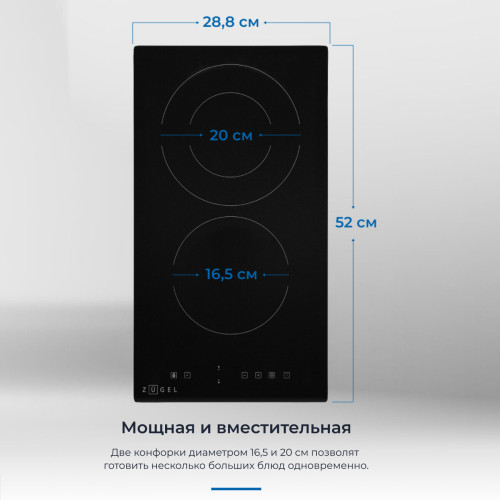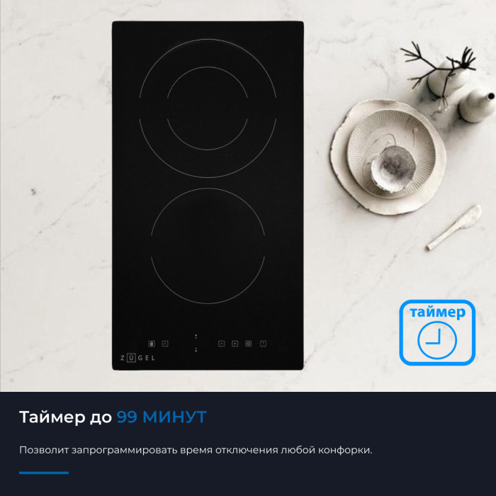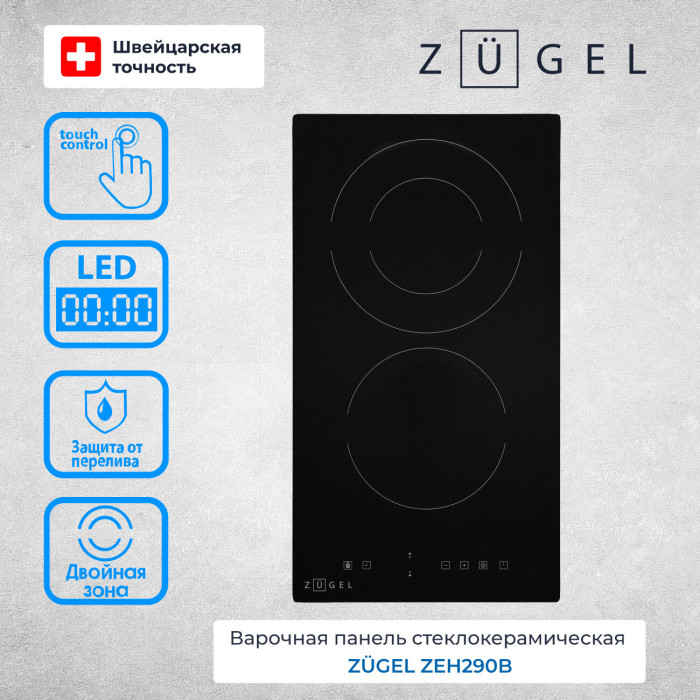 Электрическая варочная поверхность ZUGEL ZEH290B способна обеспечить вам полноценные возможности для приготовления самых разных блюд благодаря 2 Hi-Light-конфоркам, которыми она оснащена. Прибор защищен и от перегрева, и от перелива, поэтому он абсолютно безопасен в использовании, даже если в доме есть маленькие дети. Малыши не смогут изменить настройки, так как панель управления блокируется на время готовки. Некогда стоять у плиты? Вам и не придется этого делать, так как прибор оснащен таймером на 99 минут. Прибор имеет съемные ножки, что позволит размещать его без встраивания в столешницу.