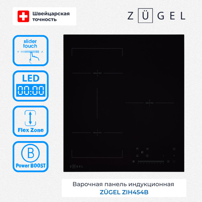 Индукционная варочная поверхность ZUGEL ZIH454B - это стильное и функциональное решение для вашей кухни.