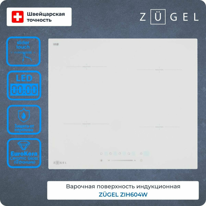 Варочная поверхность индукционная ZUGEL ZIH604B - это современное и функциональное решение для вашей кухни. Выполненная в черном цвете, варочная панель изготовлена из стеклокерамики Vitro Ceramic Glass, что обеспечивает долговечность и стильный внешний вид.