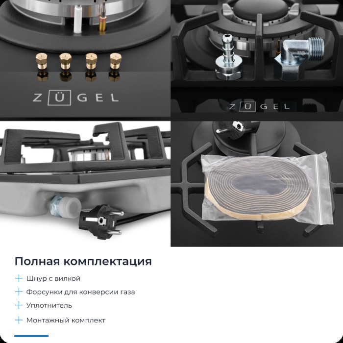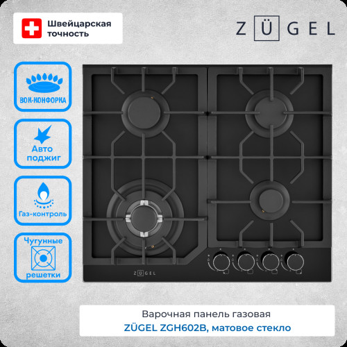 Варочная поверхность газовая ZUGEL ZGH602B - это удобное и функциональное решение для вашей кухни. Модель оснащена 4 конфорками, что позволяет готовить несколько блюд одновременно.