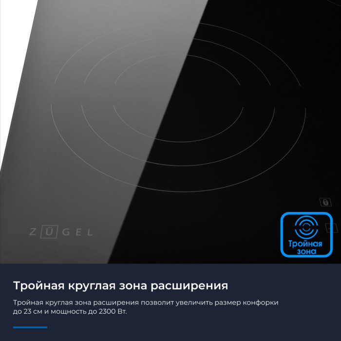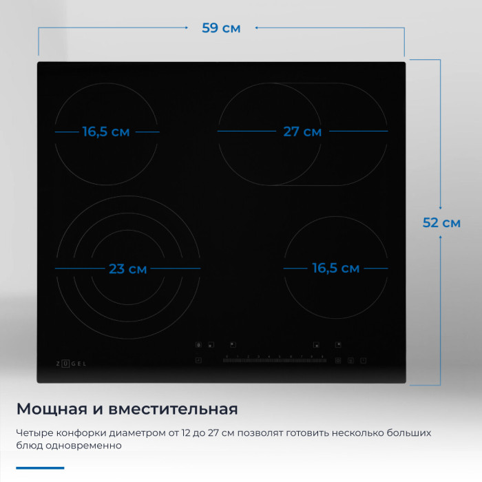 Варочная панель стеклокерамическая ZUGEL ZEH607B - современное и функциональное решение для вашей кухни. Выполнена из высококачественной стеклокерамики, что обеспечивает долговечность и простоту в уходе. Черный цвет панели придает ей стильный и современный вид, который гармонично сочетается с любым интерьером кухни.