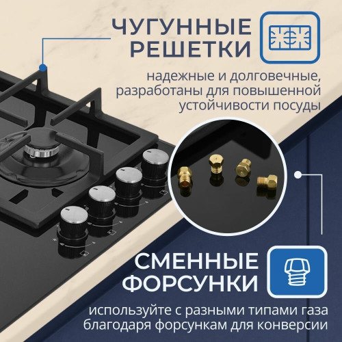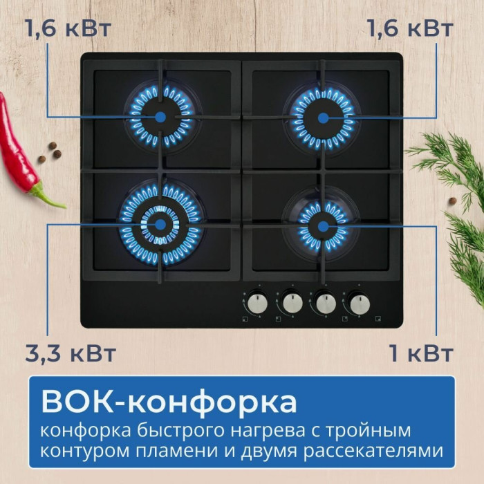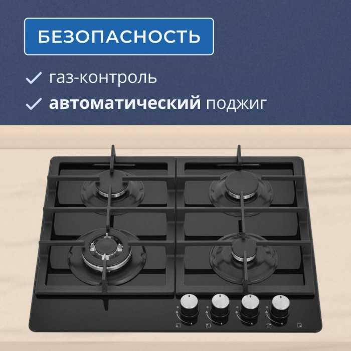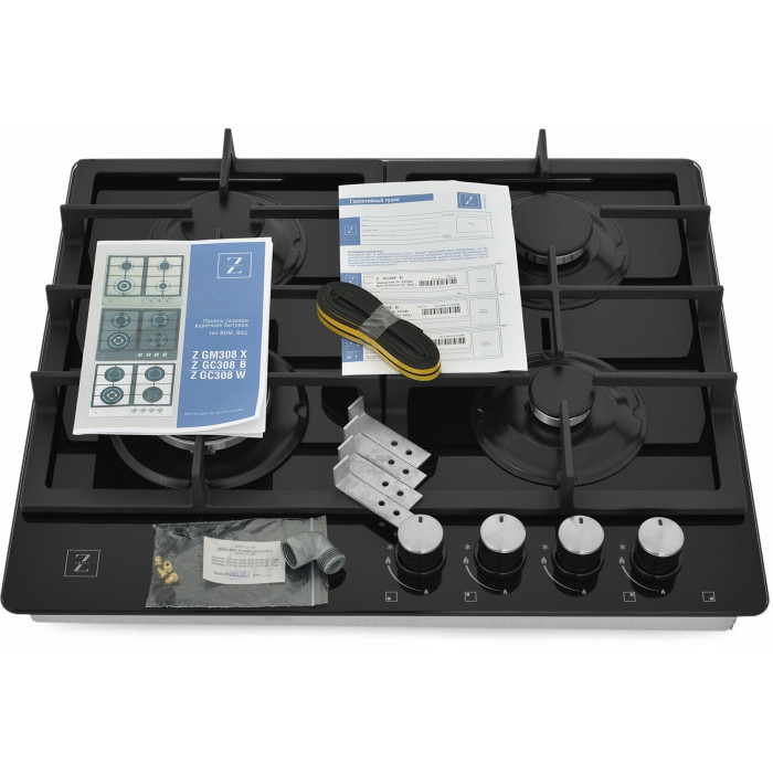 Варочная поверхность газовая ZUGEL Z GC308 B - это современная и функциональная модель, исполненная в черном закаленном стекле.