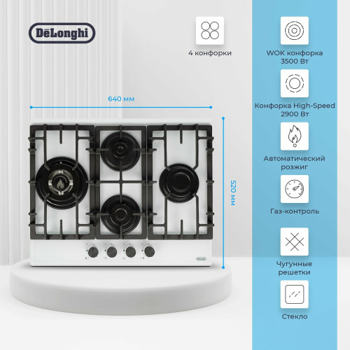 Газовая варочная панель DeLonghi GABRIELLA 6GW BB – это надежность, безопасность и высокое качество от итальянского бренда.