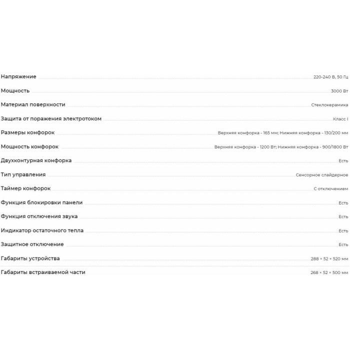 Верхняя конфорка -165 мм. Нижняя конфорка -130/200 мм.