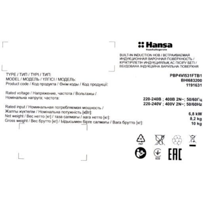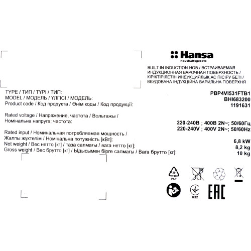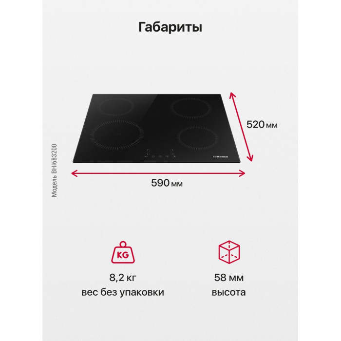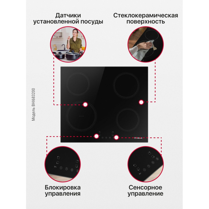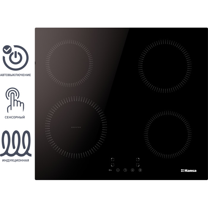 Индукционная варочная поверхность Hansa BHI683200 в универсальном черном цвете легко впишется в интерьер вашей кухни. Функция блокировки не позволит вашим детям самостоятельно включить панель и убережет от ожогов. А благодаря датчику установленной посуды зона нагрева не будет работать, пока вы не поставите на нее кастрюлю. Данная технология также соотносит размер площади нагрева с размером и формой посуды. Для управления варочной поверхностью необходимо просто коснуться сенсора, чтобы выбрать уровень нагрева.