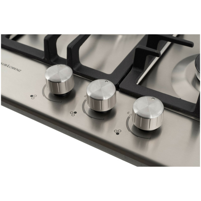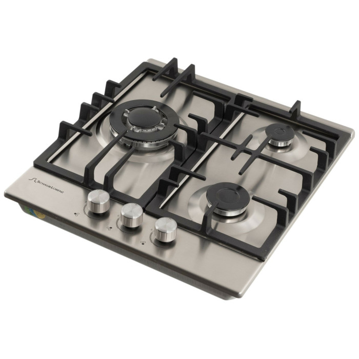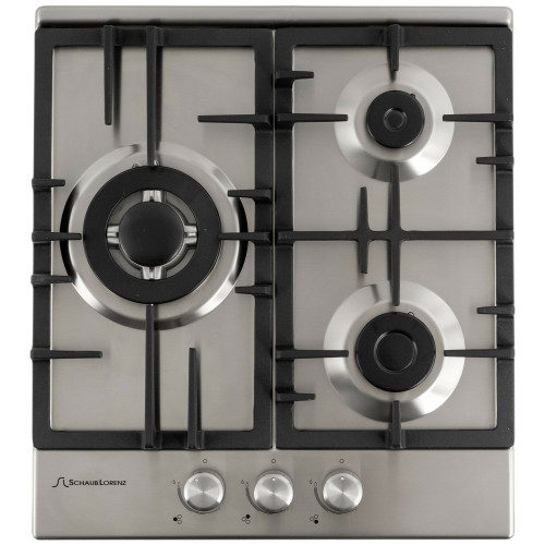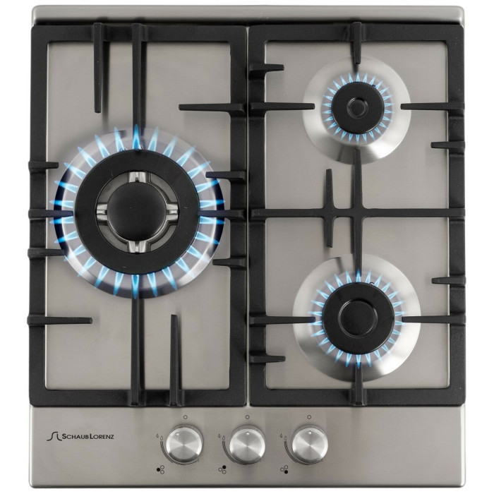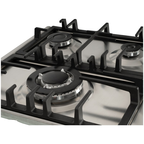 поверхность газовая независимая, 45 см, газ на металле, 3 конфорки, решетки чугунные, нержавеющая сталь