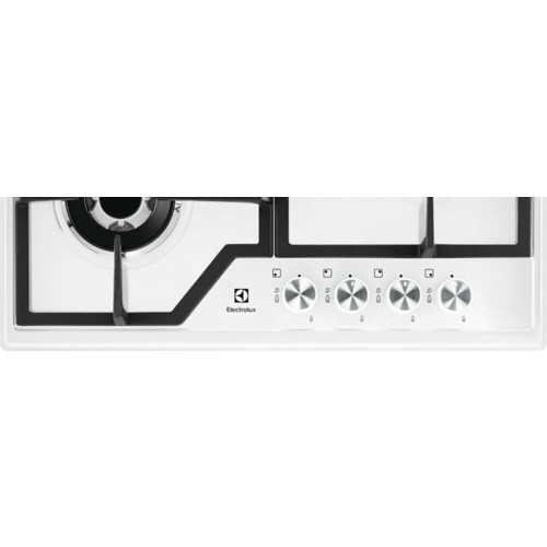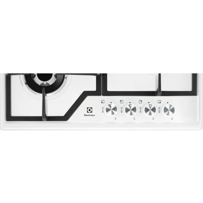 Встраиваемая газовая варочная панель Electrolux EGS6436WW 4 конфорки, эмалированная сталь белого цвета, мощность: 8800 Вт, автоматический электроподжиг, газ-контроль, решетки: чугун, независимая установка.