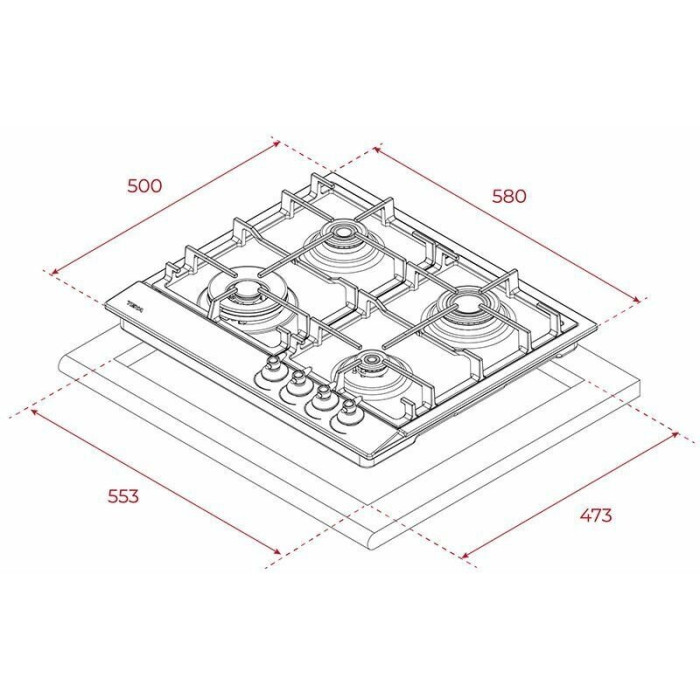 Газовая варочная панель 60 см Покрытие глянцевой эмалью цвета Ваниль Поворотные регуляторы в цвете «состаренная бронза» Чугунные решетки Съёмные горелки чёрного цвета Sabaf® Автоподжиг на каждой горелке Газ-контроль на каждой горелке 4 зоны приготовления: 1 горелка с тройным пламенем (4,0 кВт) 1 основная горелка (2,8 кВт) 1 средняя горелка (1,75 кВт) 1 вспомогательная горелка (1 кВт) Номинальная тепловая мощность: 9 550 Вт Тип газа: LPG (бутан, пропан), природный Кабель 92 см без вилки Сделано в Италии Общие размеры Высота изделия (мм): 85 Ширина изделия (мм): 580 Глубина изделия (мм): 500 Вес нетто (кг): 8,75 Установочные размеры Ширина встраивания (мм): 553 Глубина встраивания (мм): 473 Высота встраивания (мм): 35 Конкретные особенности Тип газа: Природный газ Максимальная номинальная мощность (Вт): 9550 Авторозжиг: Да Электросоединение Частота (Гц): 50/60 Номинальное напряжение (В): 220-240 Длина соединительного кабеля (см): 100 Варочные зоны Зоны приготовления: 4 Система безопасности Автоматическое защитное отключение (автоблокировка) (газ): Да Обработка края и установка Обработка поверхности: Vanilla Аксессуары Тип решётки: Full Grid Подставка для сковороды-вок: NO Система подстройки под посуду: Да Комплект для соединения: NO Литые чугунные решетки: Да