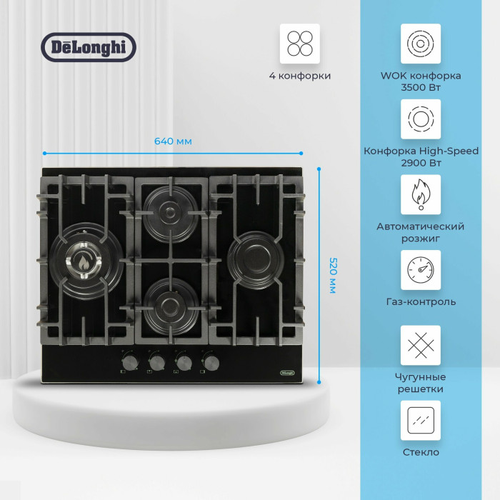 Газовая варочная панель DeLonghi GABRIELLA 6GW NB – это надежность, безопасность и высокое качество от итальянского бренда.