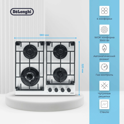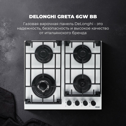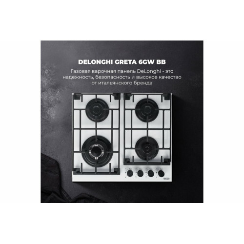 Газовая варочная панель DeLonghi GRETA 6GW это надежность, безопасность и высокое качество от итальянского бренда.