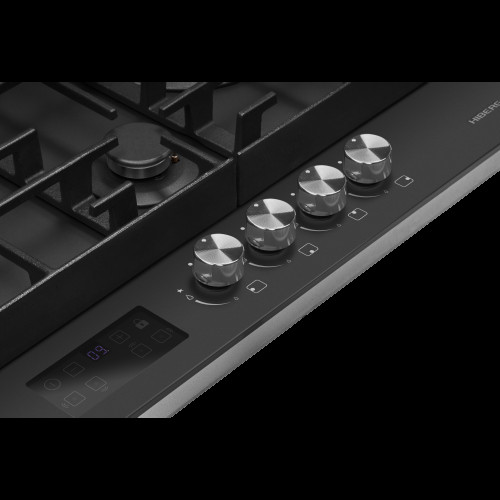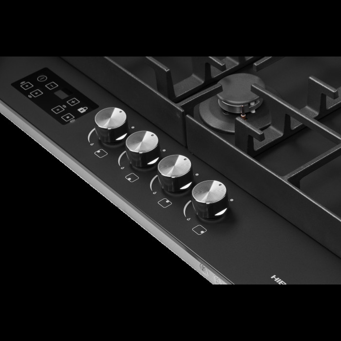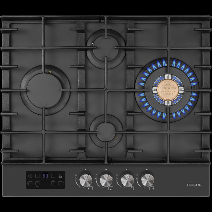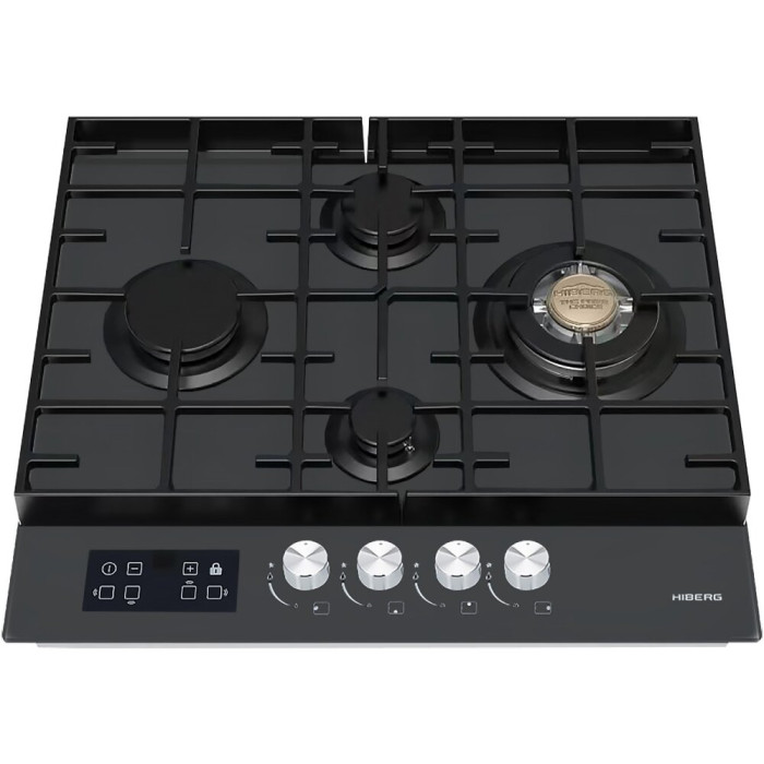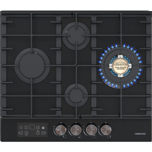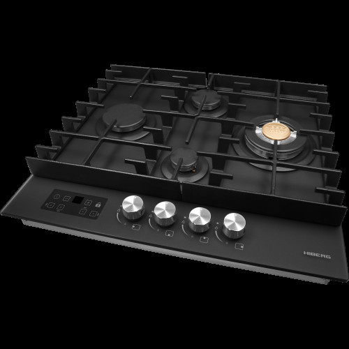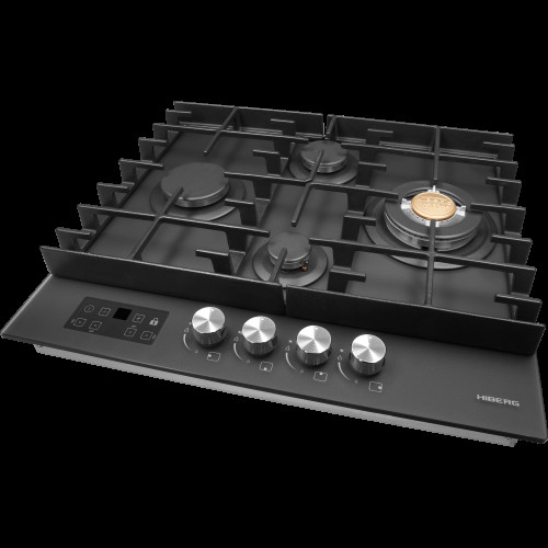 Газовая варочная поверхность HIBERG VM 6245 оснащена четырьмя газовыми конфорками с функциями автоматического электророзжига и газ-контроля.