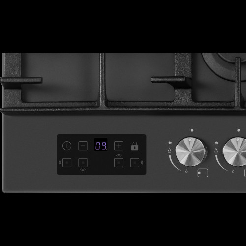 Индивидуальный сенсорный таймер отключения газа на каждую конфорку даёт возможность контролировать время готовки каждого блюда (с диапазоном от 1 до 99 минут, по истечении заданного времени конфорка отключается автоматически).