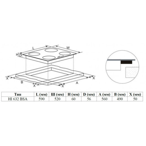 защитное отключение конфорок, индикатор остаточного тепла, кнопка блокировки панели