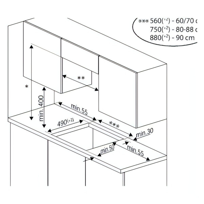Левая дальняя конфорка - 18 см; Правая дальняя конфорка - 21 см; Левая ближняя конфорка - 18 см; Правая ближняя конфорка - 14.5 см