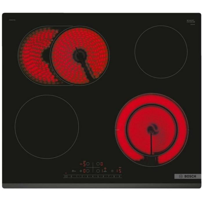 Варочная панель Bosch PKF631FP3E это идеальное решение для тех, кто хочет иметь удобную и функциональную варочную поверхность. У нее стандартный размер 60 на 60 сантиметров и 4 конфорки разного размера и мощности, что позволяет готовить блюда любой сложности. Стеклокерамическая поверхность прочная, аккуратно выглядит и легко моется. Благодаря скошенному краю между столешницей и прибором не будет забиваться грязь.