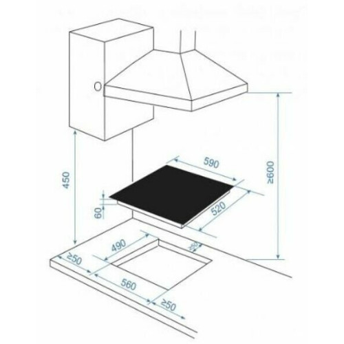 Левая дальняя конфорка - 14.5 см; Правая дальняя конфорка - 12 см; Левая ближняя конфорка - 14.5 см