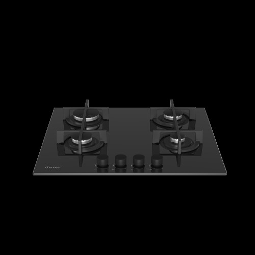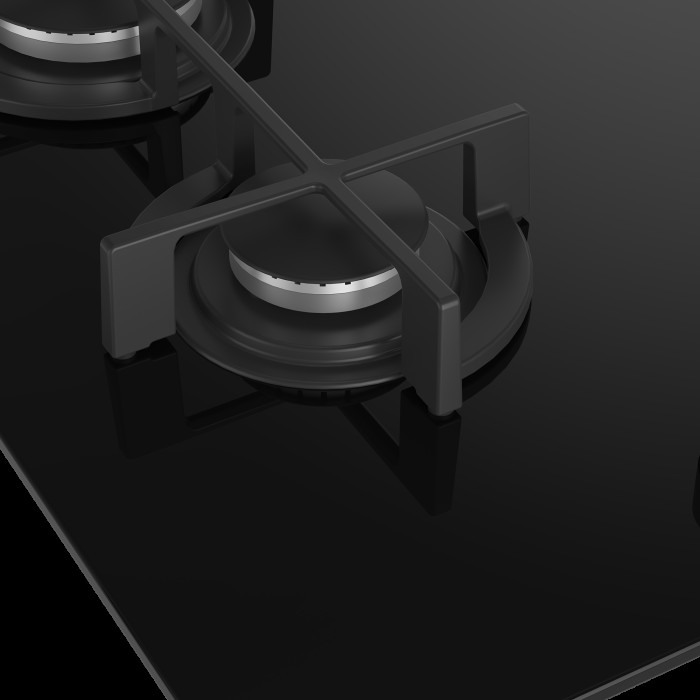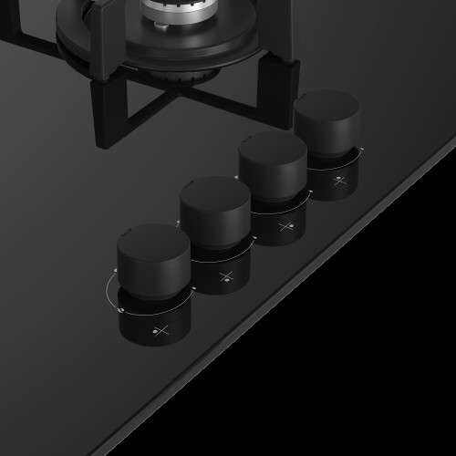 Газовая варочная поверхность (газ на стекле) 4 зоны, одна зона с двойным уровнем пламени, автоподжиг, газ-контроль, чугунные решетки, цвет: черный