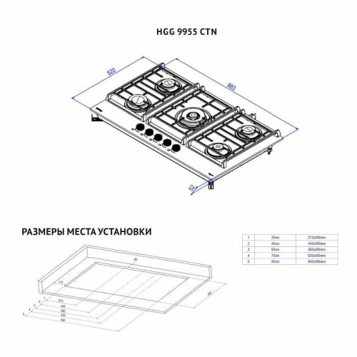 Тип панели: газовая; Установка: независимая; Материал панели: закаленное стекло; Переключатели: поворотные; Расположение панели управления: спереди; Общее количество конфорок: 5; Электроподжиг: есть; Тип электроподжига: автоматический;