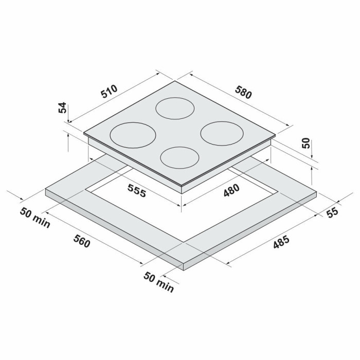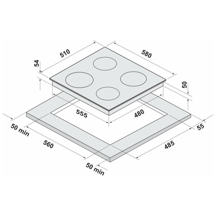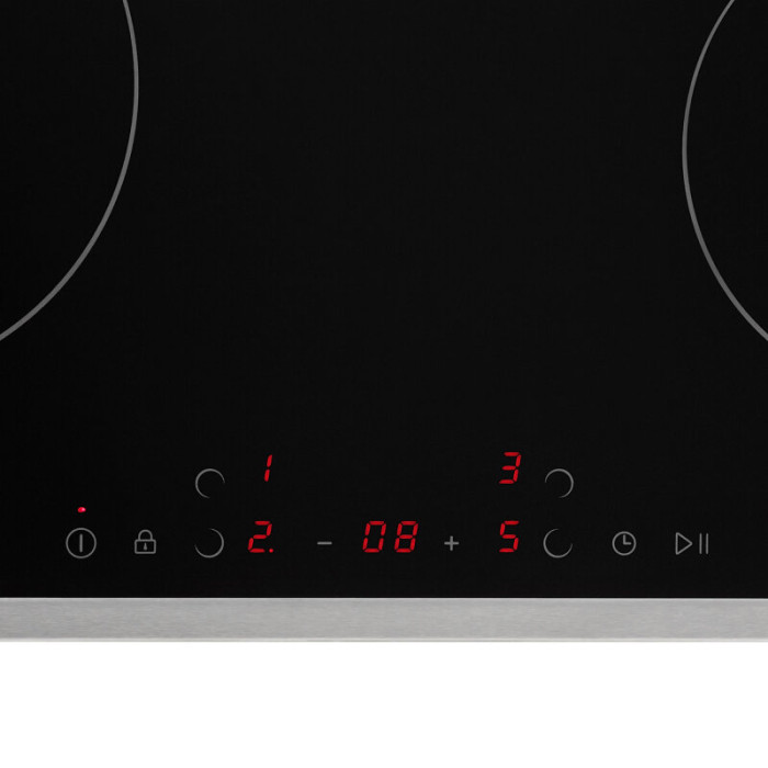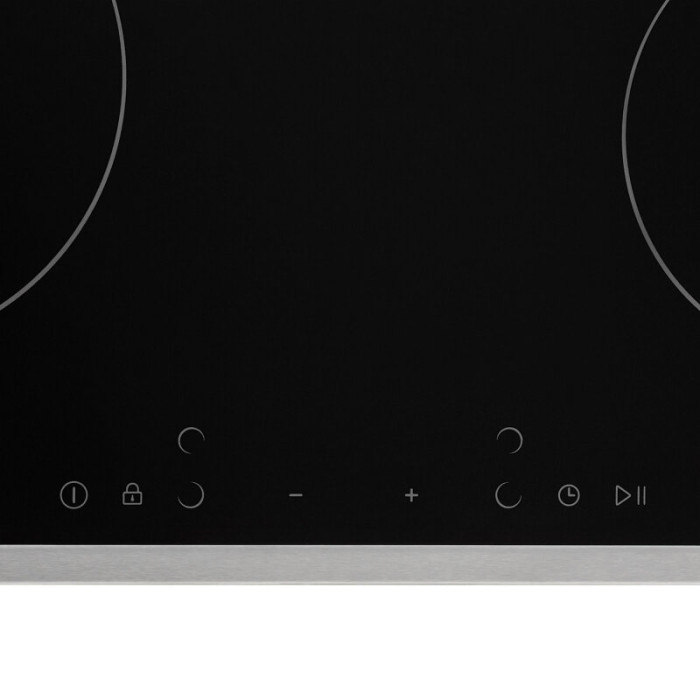 Диаметр и мощность конфорок: Дальняя левая: 145 мм * 1,6/1,8 кВт; Дальняя правая: 200 мм * 1,6/1,8 кВт; Ближняя левая: 200 мм * 1,6/1,8 кВт; Ближняя правая: 145 мм * 1,6/1,8 кВт