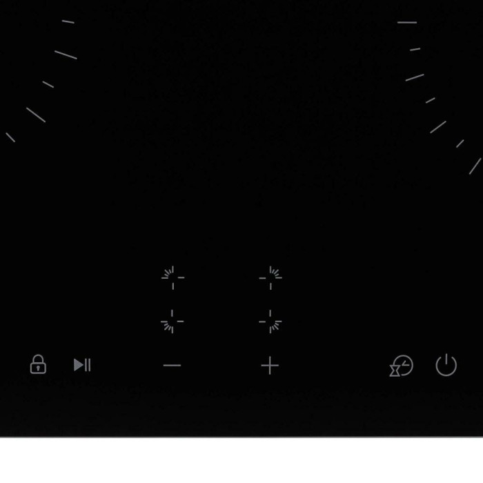 Диаметр и мощность конфорок, мм/кВт: Дальняя левая: 165 мм * 1,2 кВт; Дальняя правая: 200 мм * 1,8 кВт; Ближняя левая: 200 мм * 1,8 кВт; Ближняя правая: 165 мм * 1,2 кВт
