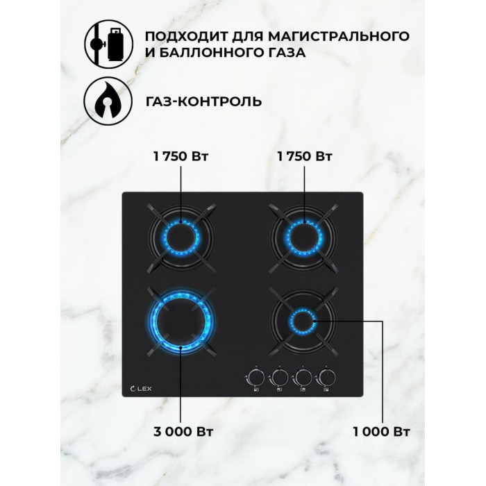 Модель GVG 643A BBL с механическим управлением и черной стеклянной основой шириной 60 см имеет 4 конфорки, на которых вы легко и с комфортом приготовите любые блюда. Варочная поверхность может работать от магистрального или баллонного газа. Встроенный в ручки конфорок электроподжиг упрощает использование устройства и делает его еще безопаснее. Благодаря компактным решеткам за поверхностью удобно ухаживать, при этом посуда на них держится так же устойчиво, как на полноразмерных.