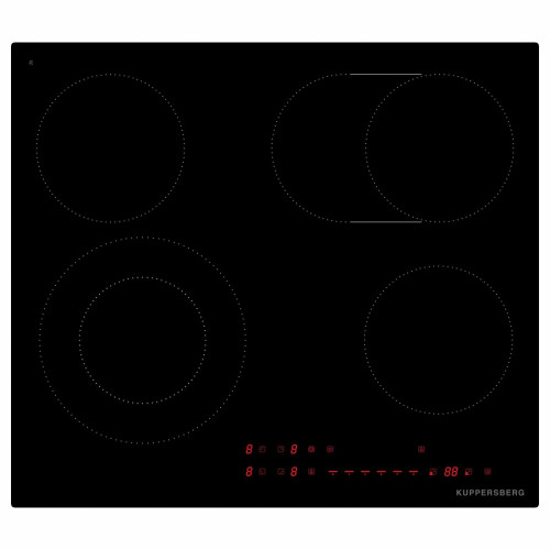 тип варочной поверхности: электрическая, количество конфорок: 4, установка: независимая, переключатели: сенсорные, ширина: 59 см, глубина: 52 см, функции: кратковременная пауза, максимальная потребляемая мощность: 6.60 кВт