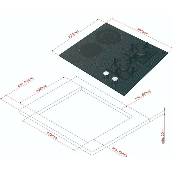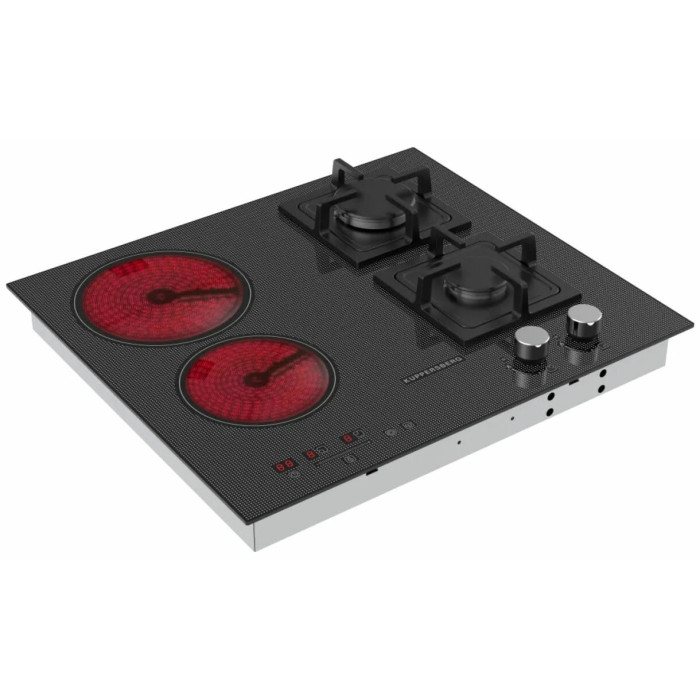 Мощность конфорок, кВт: передняя левая - 1,2, передняя правая - 1,75 (газ), задняя левая - 1,8/0,9 , задняя правая - 3,0 (газ), Количество цифровых дисплеев - 3 Количество уровней мощности - 9 , Стеклокерамика- KANGER, Комплектация - скребок , Коллекция - High-Tech , Цвет - чёрный с серой графикой , Цвет фурнитуры - нержавеющая сталь