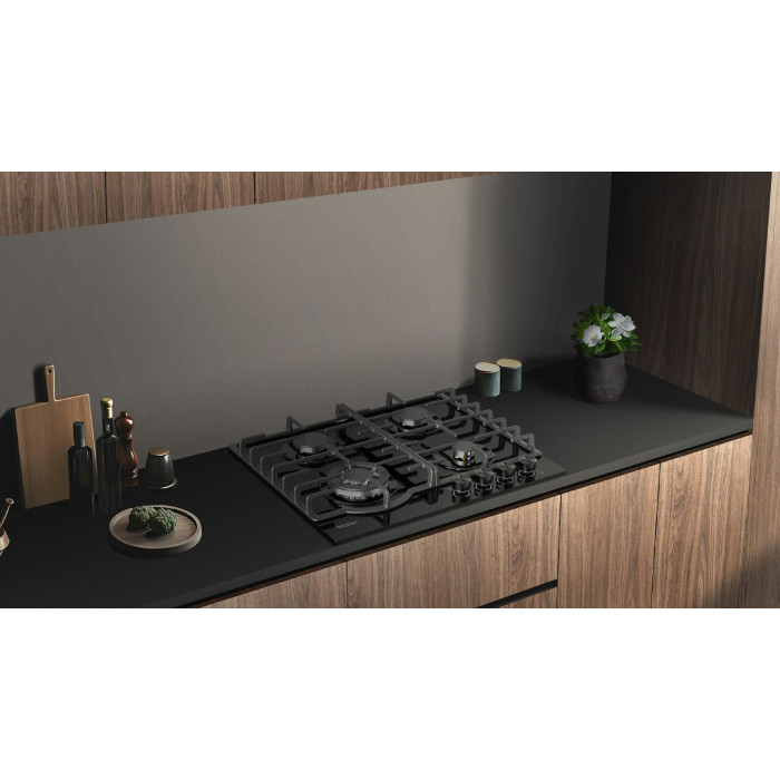 Газовая четырёхконфорочная варочная панель Haier HHX-G64RFVLB на чёрном закалённом стекле смотрится лаконично и стильно. Кроме классических конфорок разного диаметра, панель оснащена двухконтурной конфоркой повышенной мощности 3,8 кВт — с ней легко и быстро приготовятся блюда даже в объёмных кастрюлях, больших сковородах. Двухконтурная конфорка, которую также называют ВОК-конфоркой, расположена в передней части панели, но с противоположной стороны от регуляторов. В каждую конфорку интегрирован электроподжиг — пламя легко зажигается без спичек, а 9-ти ступенчатая регулировка пламени обеспечивает более точный контроль режима приготовления. Если вдруг пламя случайно погаснет, сработает функция «газ-контроль» — подача газа будет автоматически перекрыта. Чугунные решётки обеспечивают устойчивость посуды во время готовки, они съёмные — это облегчает уход. Поворотные регуляторы управления конфорками, изготовленные из металла, вынесены в переднюю часть панели и в отличие от большинства других газовых варочных поверхностей оснащены световой подсветкой. Благодаря белой подсветке области около регулятора включенной конфорки сразу видно работу панели. Haier HHX-G64RFVLB — стильная, удобная, безопасная и практичная варочная панель для вашей кухни. Общие данные: Габариты: 10.5x58.6x50.6 см Габариты ниши для встраивания: -х55.7х47.7 см Рабочий стол: закаленное стекло Количество конфорок: 4 Мощность конфорок: Передняя левая: Двухконтурная, 3.8 кВт Передняя правая: Стандартная, 1 кВт Задняя левая: Стандартная, 1.75 кВт Задняя правая: Стандартная, 1.75 кВт Электроподжиг: Интегрированный Автоматический газ-контроль Управление: Поворотные переключатели Пошаговая регулировка уровня нагрева 1-9 Регуляторы со световой индикацией Дополнительная информация: Чугунные решетки Мощность подключения (кВт): 8.3 Напряжение/Частота: 220 В / 50 Гц Сетевой кабель в комплекте Длина сетевого кабеля: 1 м Вес, нетто (кг): 11
