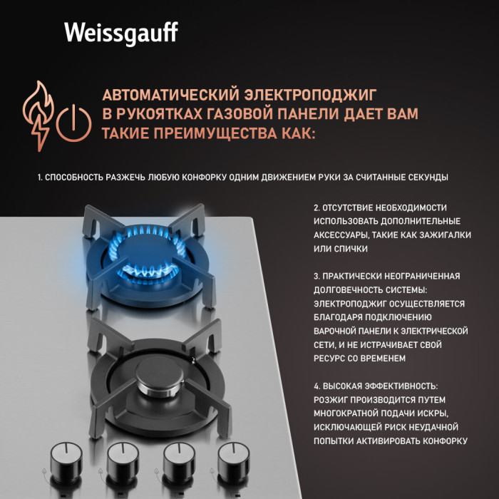 Нержавеющая сталь, Решетки из высококачественного чугуна, Экспресс-конфорка, Поворотные рукоятки Hi-Tech