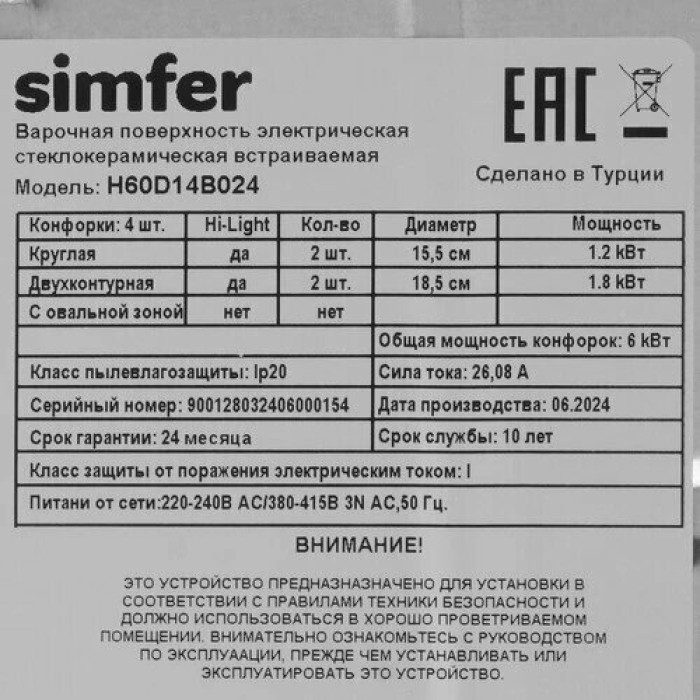 распознавание наличия посуды, распознавание размера посуды, таймер, Booster