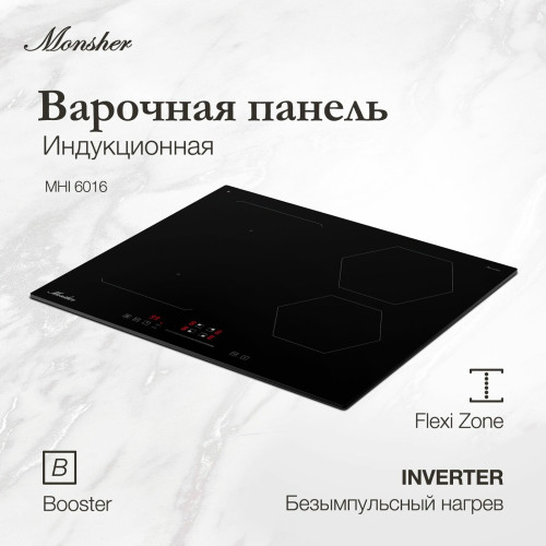 Мощность конфорок, кВт: передняя левая 1,9 кВт / 2,2 кВт Мощность конфорок, кВт: передняя правая 1.3 кВт / 1.5 кВт Мощность конфорок, кВт: задняя левая 1.3 кВт / 1.5 кВт Мощность конфорок, кВт: задняя правая 1,9 кВт / 2,2 кВт Диаметр зон, мм. передняя левая 180 мм Диаметр зон, мм. передняя правая 160 мм Диаметр зон, мм. задняя левая 180 мм Диаметр зон, мм. задняя правая 180 мм