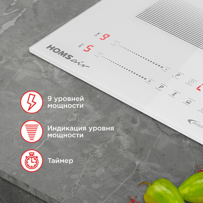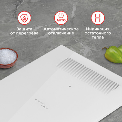 кратковременная пауза, поддержание тепла, распознавание наличия посуды, распознавание размера посуды, таймер, функция Booster