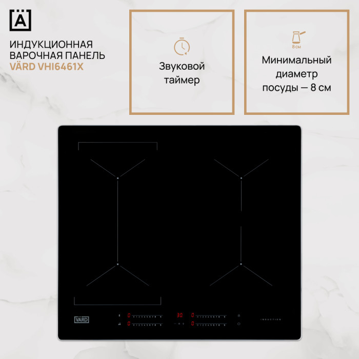 распознавание наличия посуды, таймер, функция Booster, функция Bridge