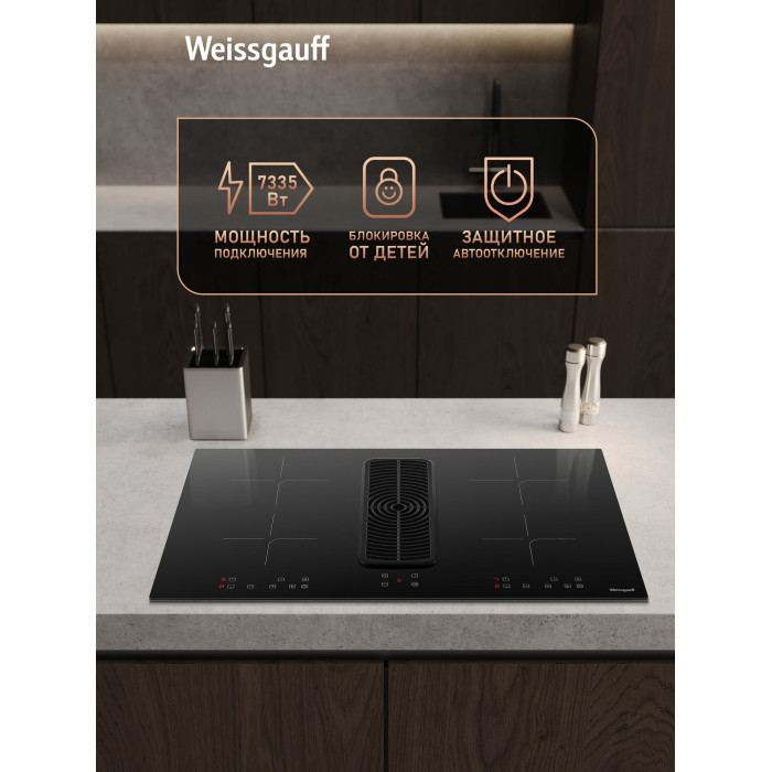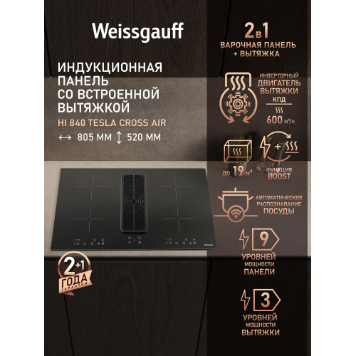 Варочная поверхность со встроенной вытяжкой Weissgauff HI 840 Tesla Cross Air